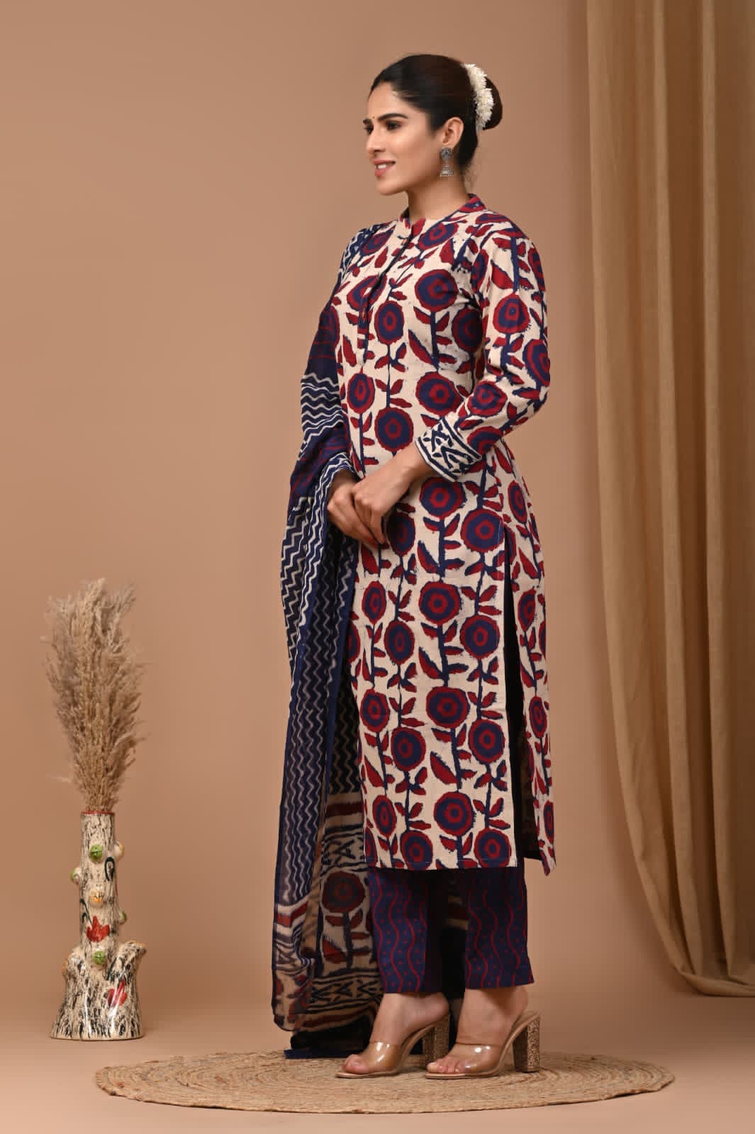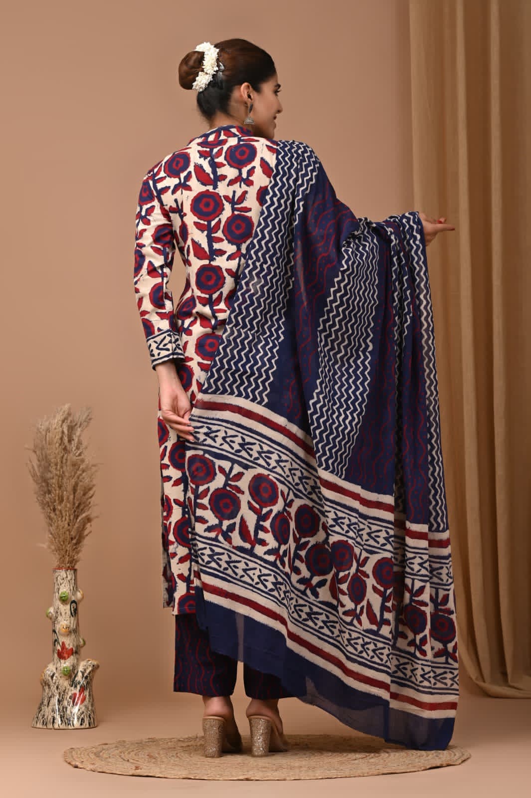 Fabric: Pure cotton for kurti and pant, mull mull for dupatta