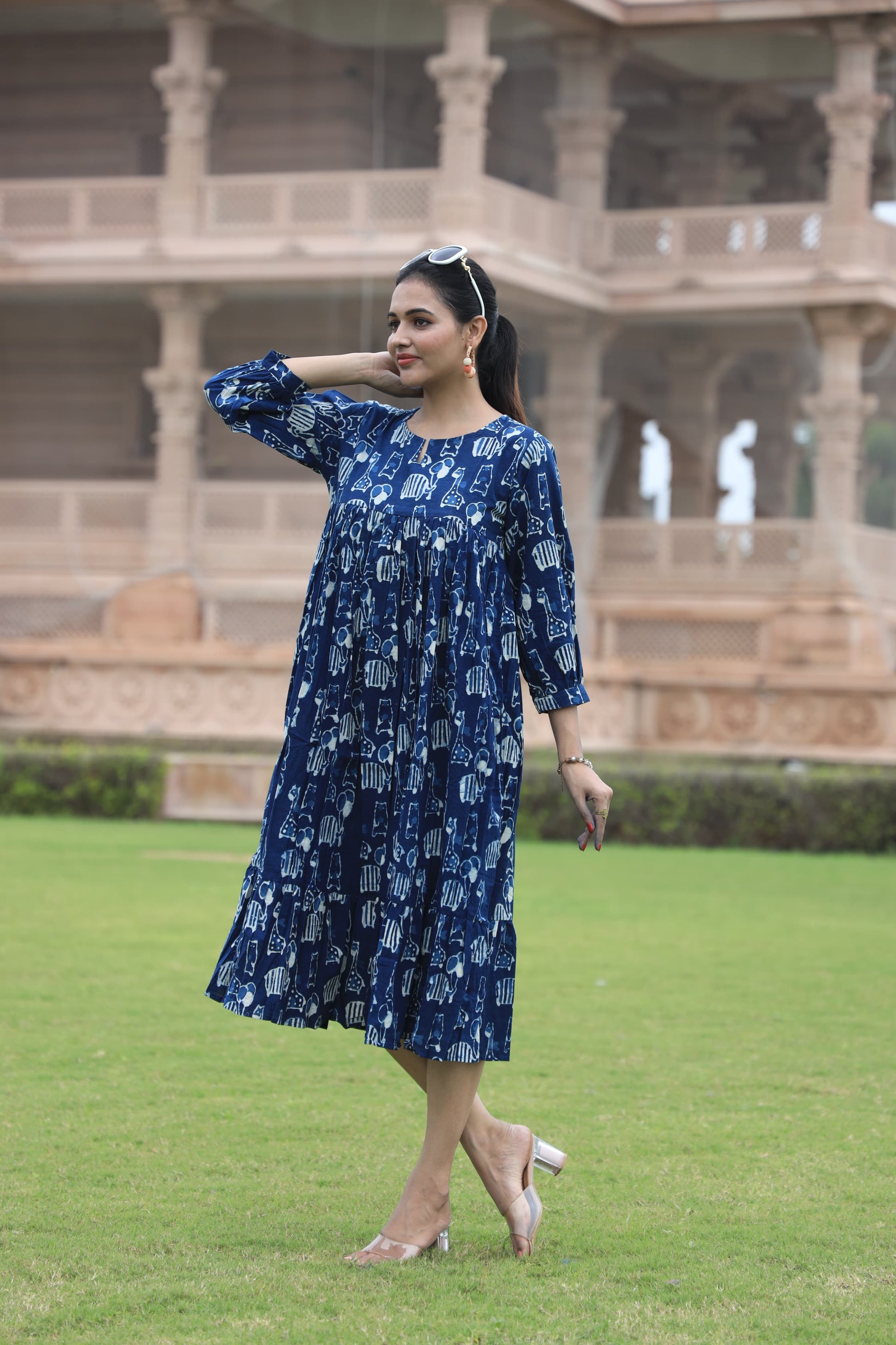 Crafted in soft and breathable 60x60 cotton, this long dress features traditional Bagru hand block printing that celebrates timeless Indian craftsmanship. Designed for comfort and ease, it's perfect for everyday wear, brunches, or travel.