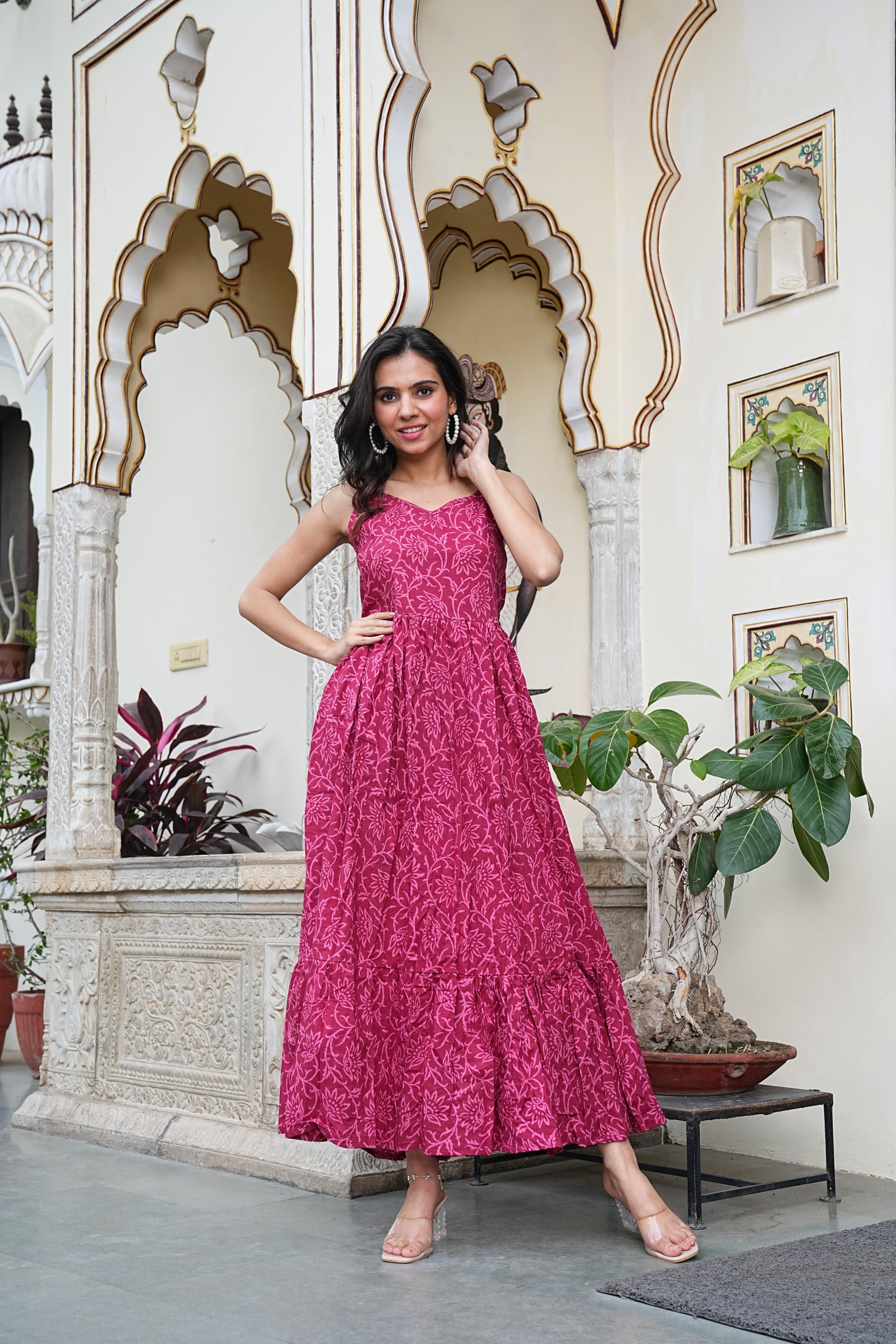 Crafted in soft and breathable 60x60 cotton, this long dress features traditional Bagru hand block printing that celebrates timeless Indian craftsmanship. Designed for comfort and ease, it's perfect for everyday wear, brunches, or travel.