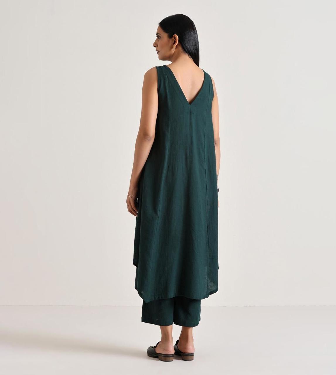 Effortless style meets all-day comfort in this chic cotton slub co-ord set. Featuring a sleeveless asymmetrical kurta (length 46") with a graceful flow and side slits, paired with straight-fit pants (length 38"), this set is perfect for both casual elegance and everyday wear.