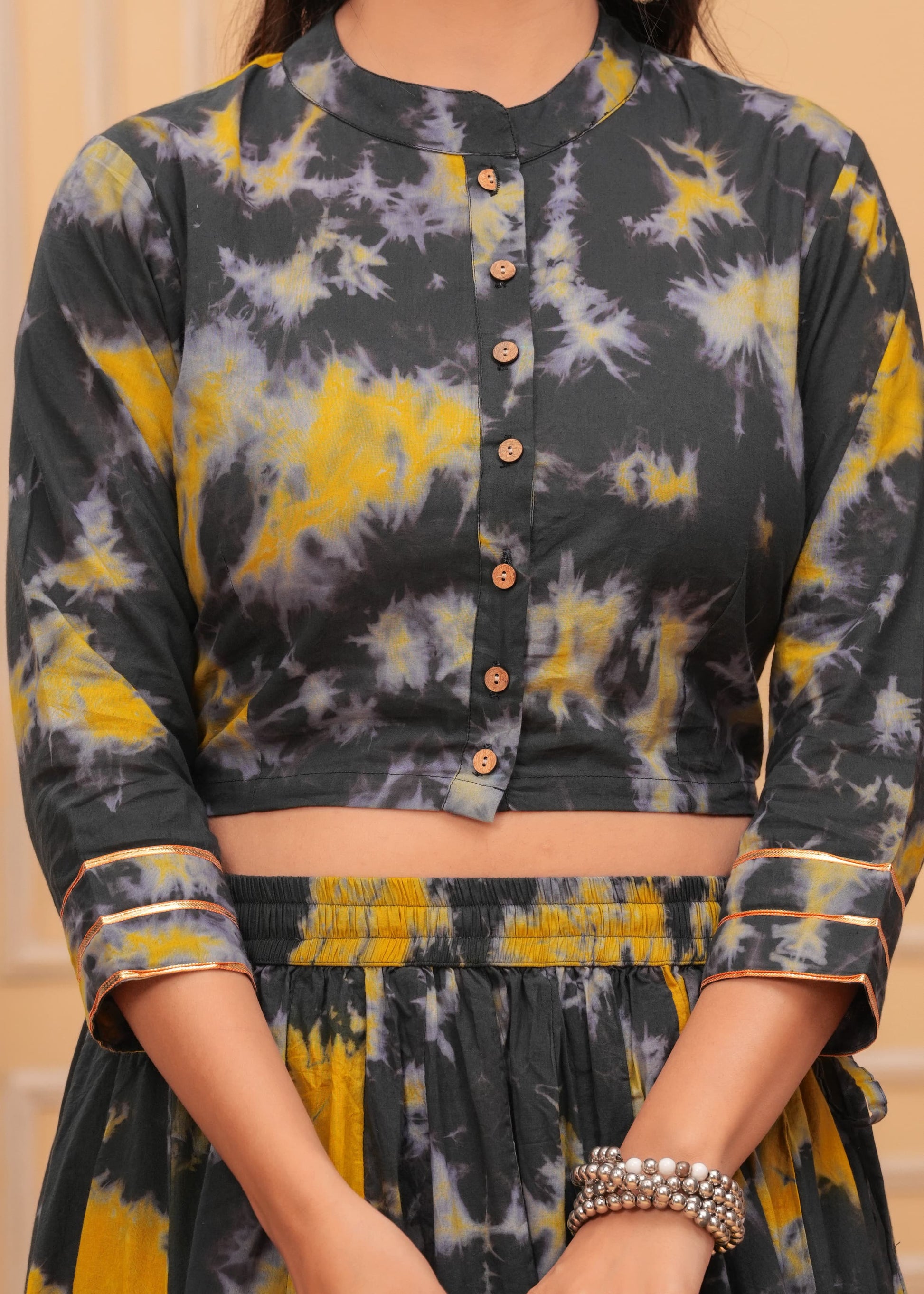 Celebrate this Navratri with our exclusive cotton hand block printed and patchwork lehenga choli set. Crafted with love in vibrant festive colours, this collection brings together tradition and style for the perfect festive look.