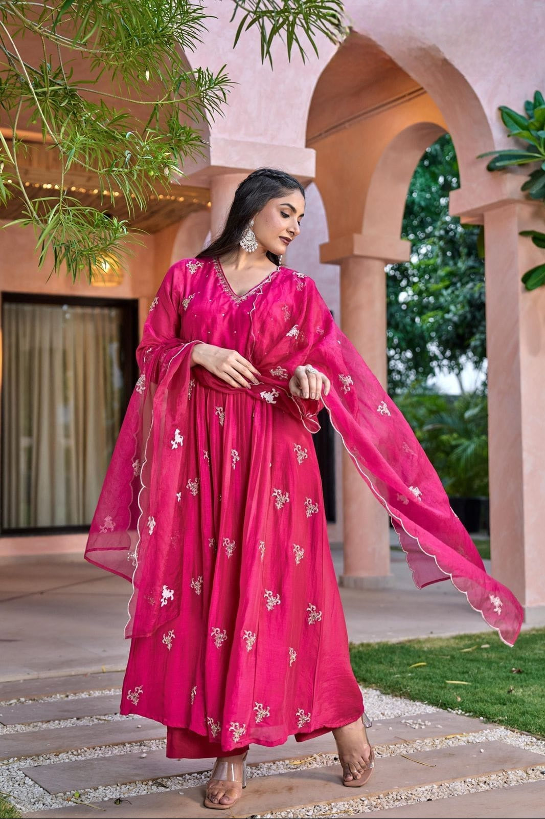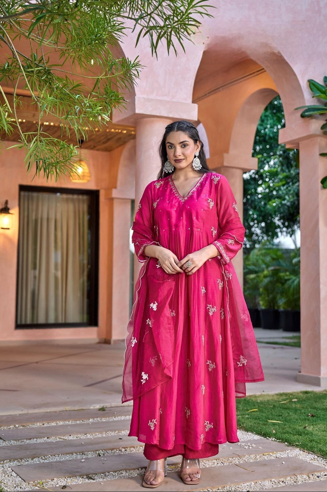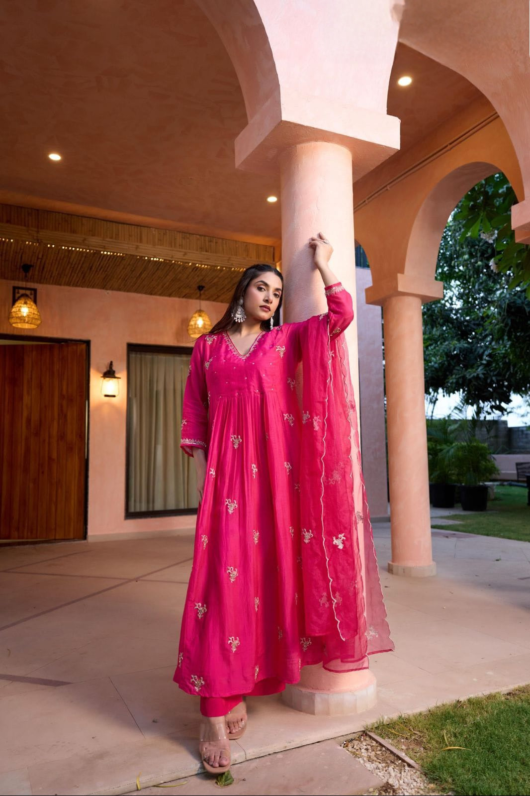 New collection of pure mal chanderi three-piece sets – crafted for graceful celebrations and festive charm