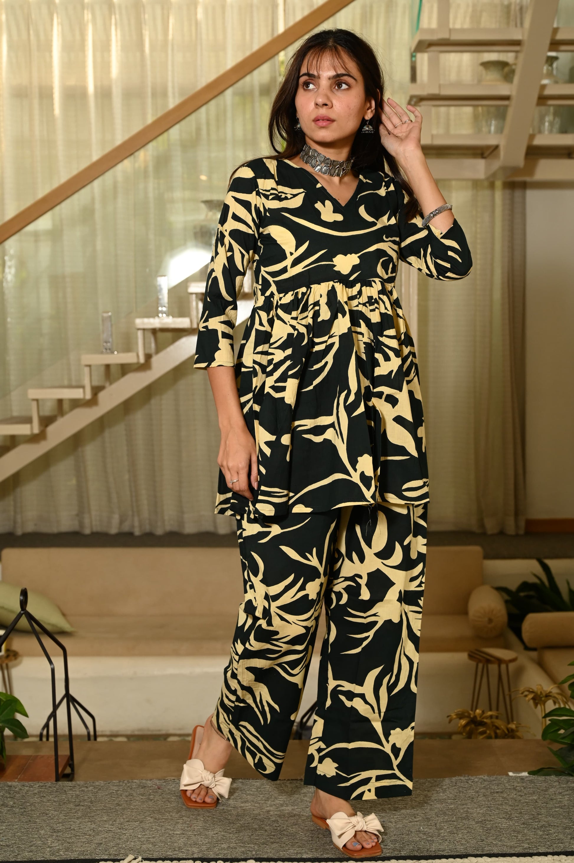 Step into effortless elegance with our latest Hand Block Printed Co-ord Set, crafted in soft and breathable pure cotton. Designed for the modern woman who loves comfort without compromising on style, this set features a flattering peplum top paired with a flowy palazzo – making it perfect for summer outings, casual gatherings, and festive brunches.