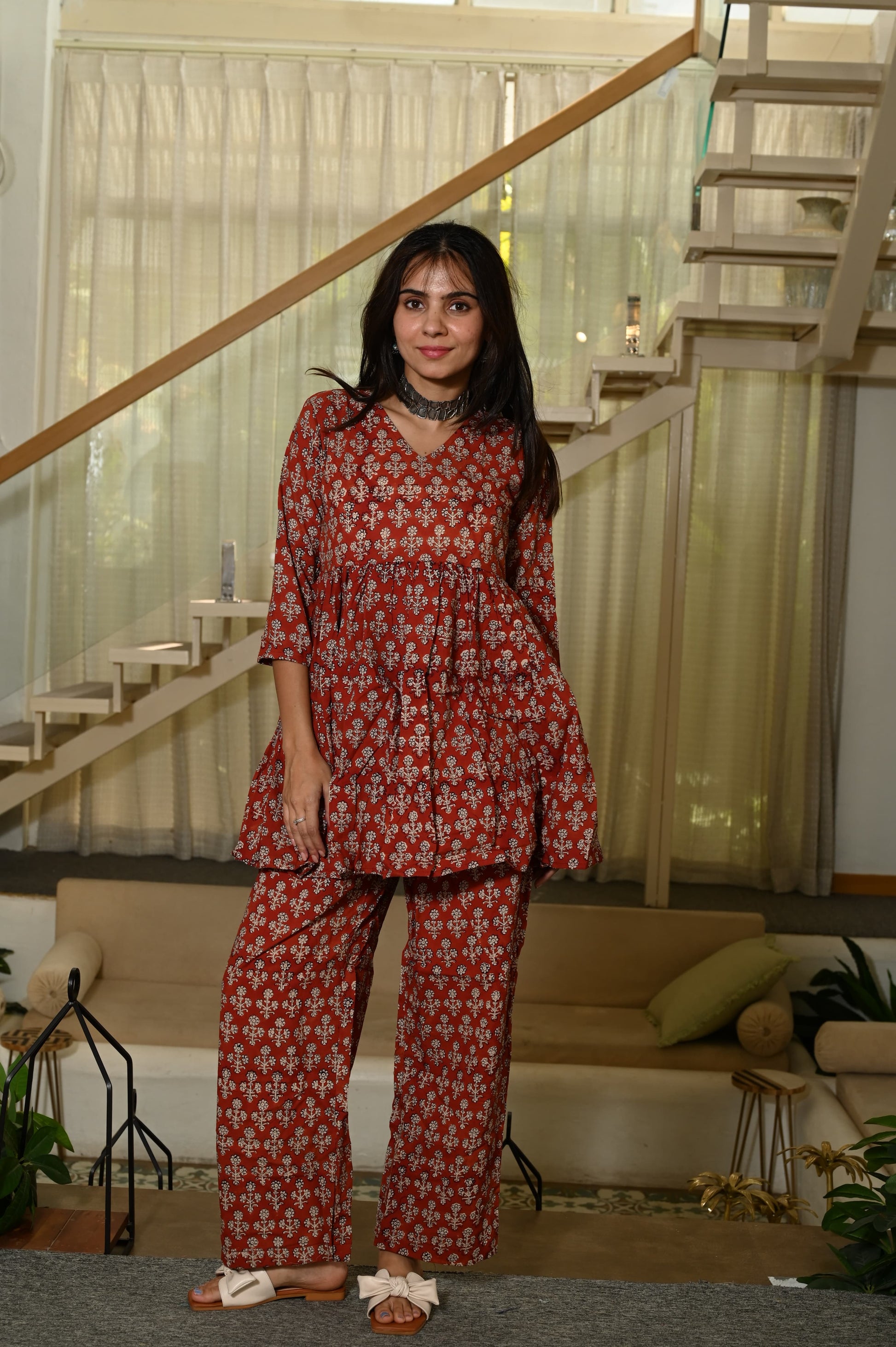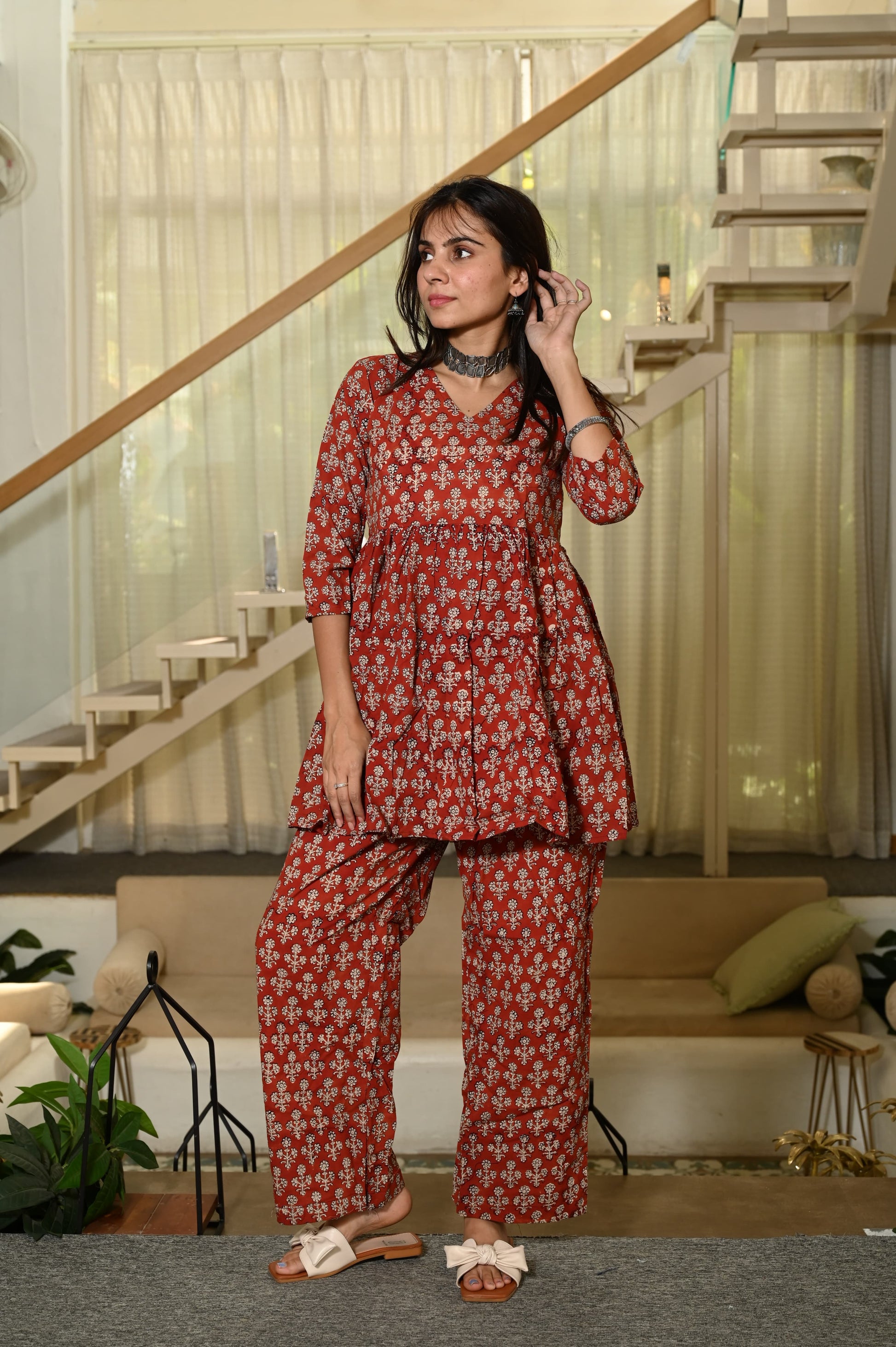 Step into effortless elegance with our latest Hand Block Printed Co-ord Set, crafted in soft and breathable pure cotton. Designed for the modern woman who loves comfort without compromising on style, this set features a flattering peplum top paired with a flowy palazzo – making it perfect for summer outings, casual gatherings, and festive brunches.